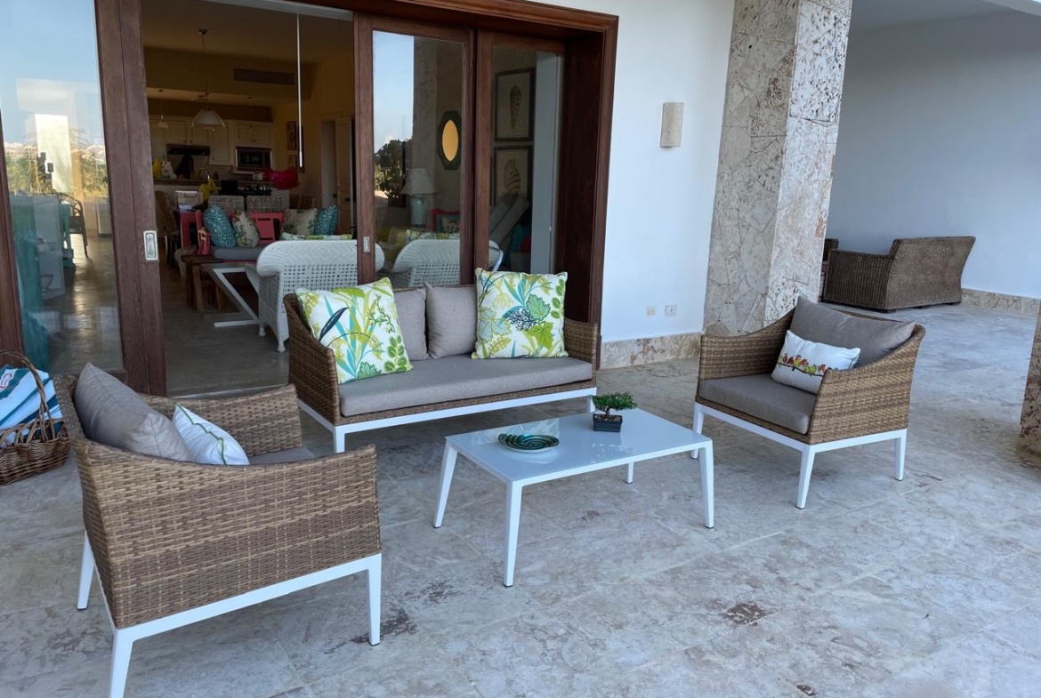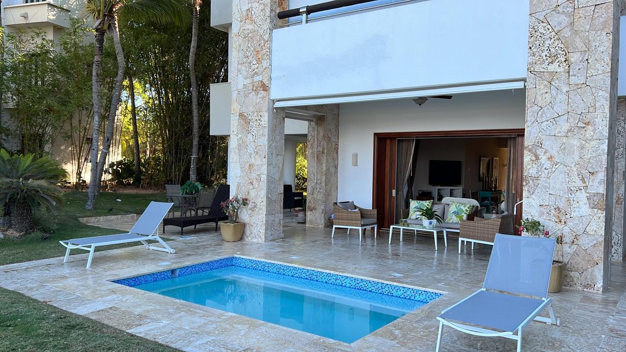 Apartamento en Golden Bear Lodge, Cap Cana, este encantador apartamento en el Golden Bear Lodge, ubicado en el primer nivel, ofrece una experiencia de confort en Cap Cana. Con una distribución cuidadosamente diseñada, el apartamento cuenta con 3 habitaciones y 3 baños y medio, brindando espacio y privacidad para todos los residentes.