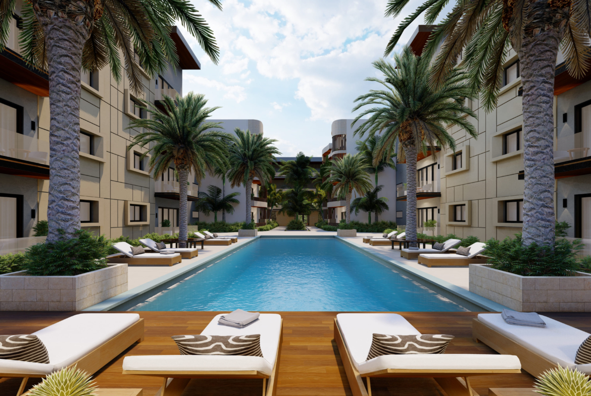 Es un complejo residencial de apartamentos de 1 y 2 habitaciones, ubicado en Las Canas, Cap Cana.