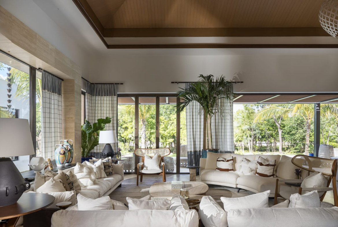 Con 1,200 m2 de construcción, incluyendo terrazas, piscina y área de BBQ, esta villa ofrece una distribución funcional bajo un elegante concepto abierto, destacándose por su amplia entrada y su excelente integración con el entorno natural.